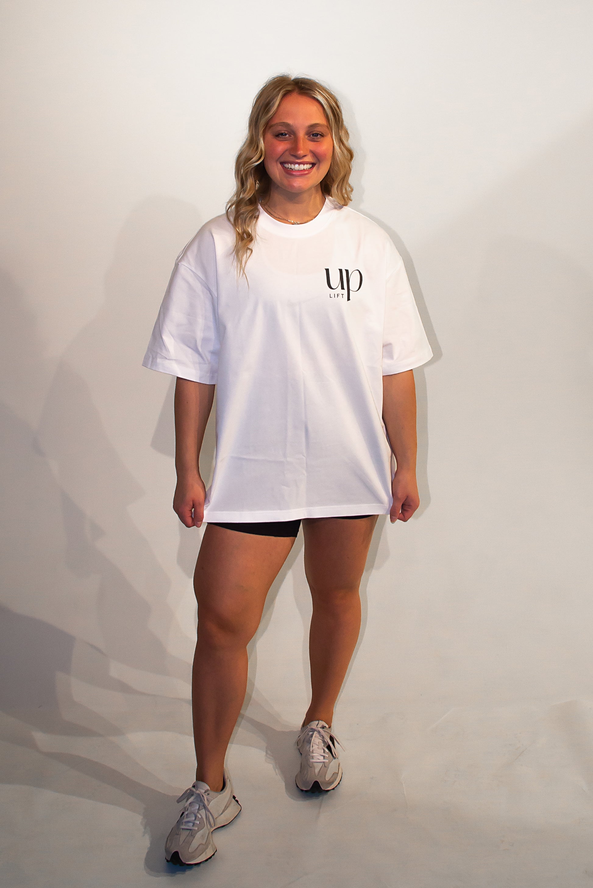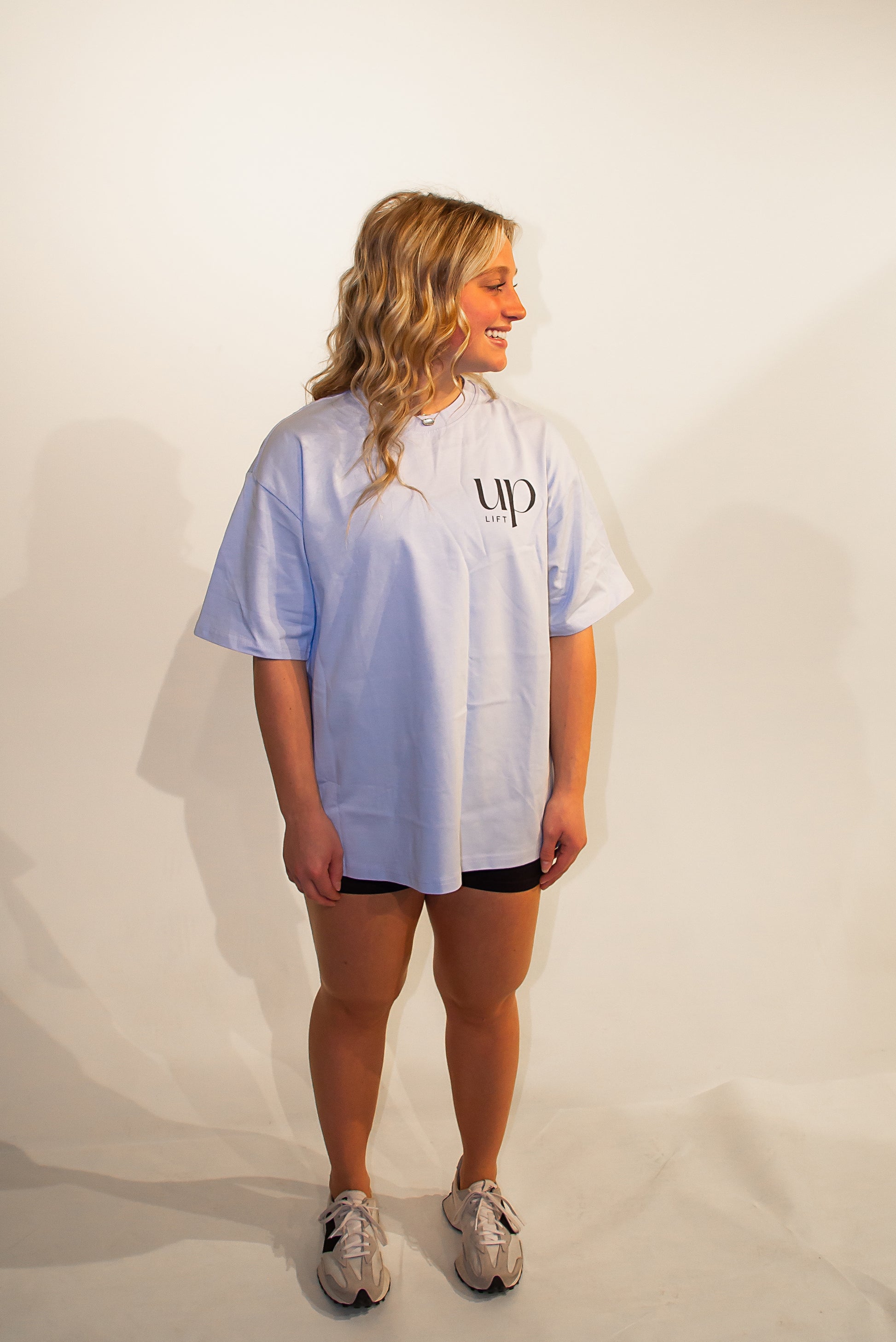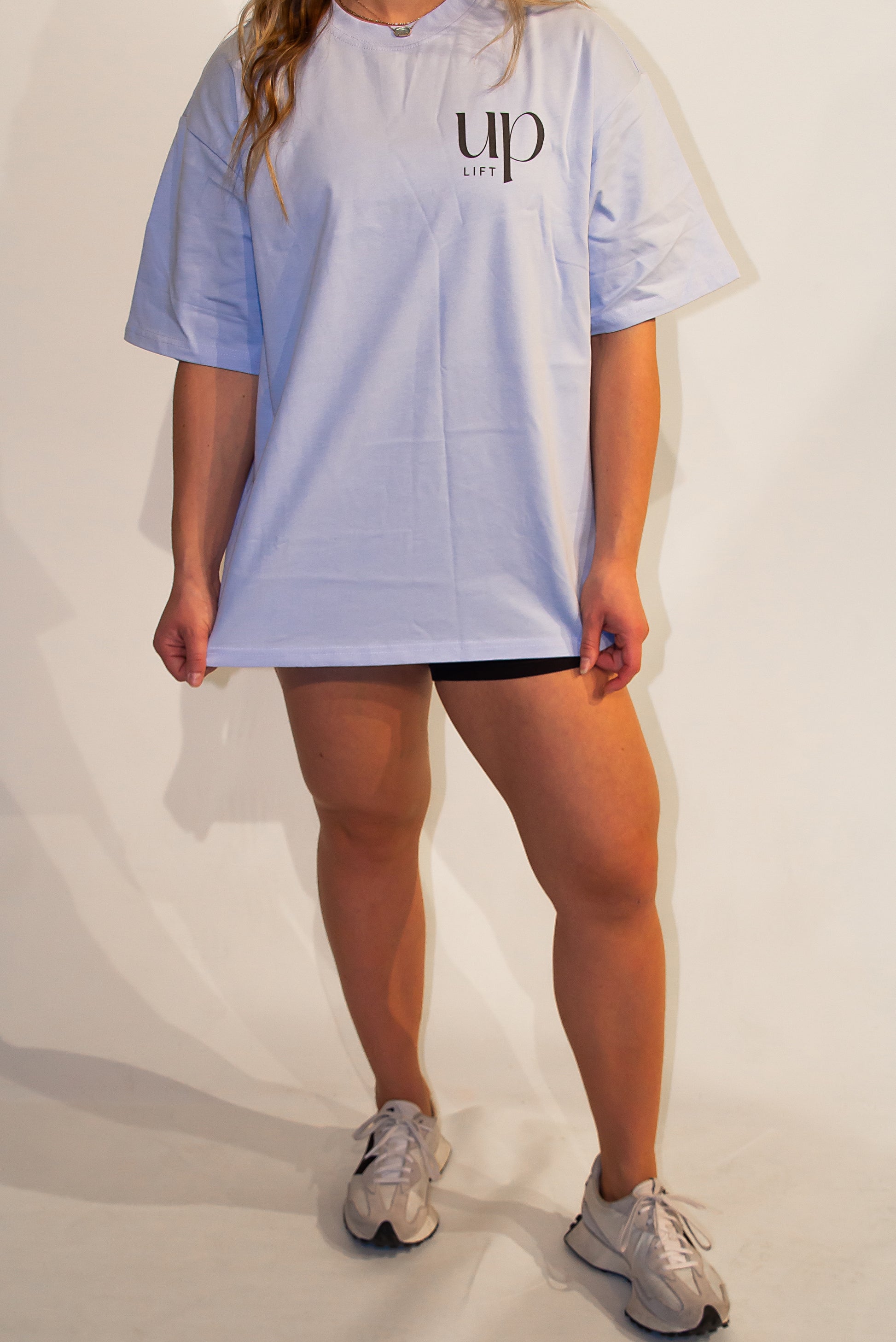Introducing the liftUP Basic Tee, the ultimate essential for your workout wardrobe. Crafted from 100% cotton with a 240 GSM. The wider fit at the bottom allows for ease of movement during any intense workout. Featuring a DTG print and available in a variety of colors, this tee is perfect for the gym or everyday wear. Machine washable and shown here in the vibrant Light Blue, Black, and White. The liftUP Basic Tee is a must-have for any fitness enthusiast. Size up for the perfect fit and elevate your workout game with this versatile and stylish tee.