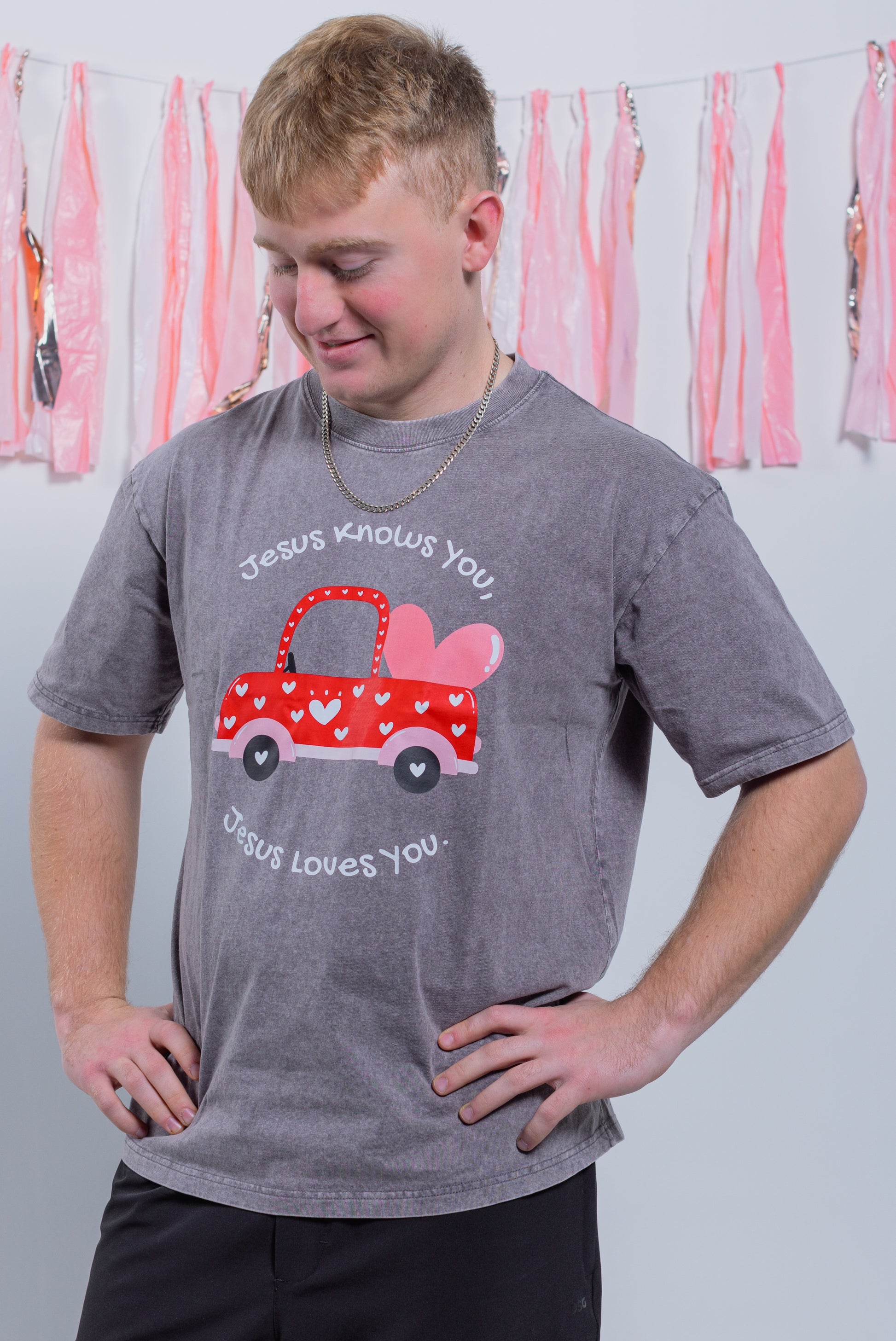 Ride in Faith and love with our Vintage Love Truck tee. This classic yet eye-catching design is printed using Direct-to-Garment (DTG) technology, ensuring long lasting detail. Crafted with soft, vintage-washed gray cotton, this t-shirt has a relaxed, worn-in feel that's perfect for everyday wear. The unisex fit makes it a comfortable and stylish choice for anyone looking to spread love and faith wherever they go.